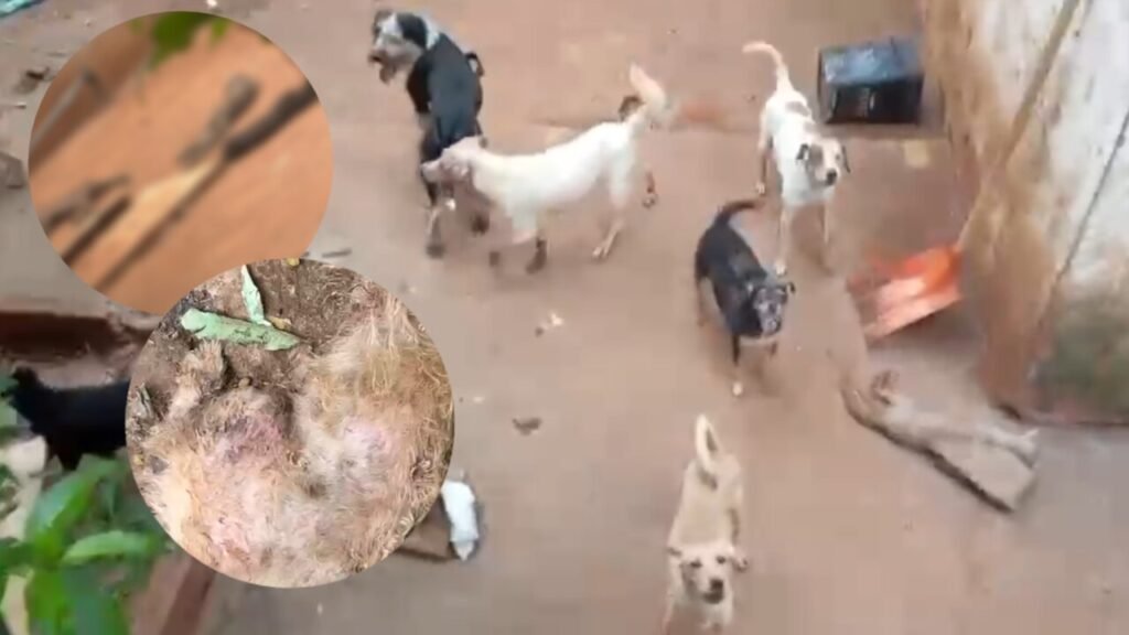As imagens registradas demonstram a negligência e o abandono. Há gatos já em decomposição, dejetos espalhados e cachorros magros ou debilitados. A vizinha tenta ajudar oferecendo ração, mas a quantidade de animais disputando o alimento é superior.