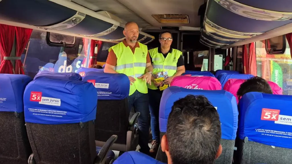 O foco foi alertar usuários de linhas intermunicipais e interestaduais sobre a obrigatoriedade e a função do cinto de segurança durante todo o trajeto.