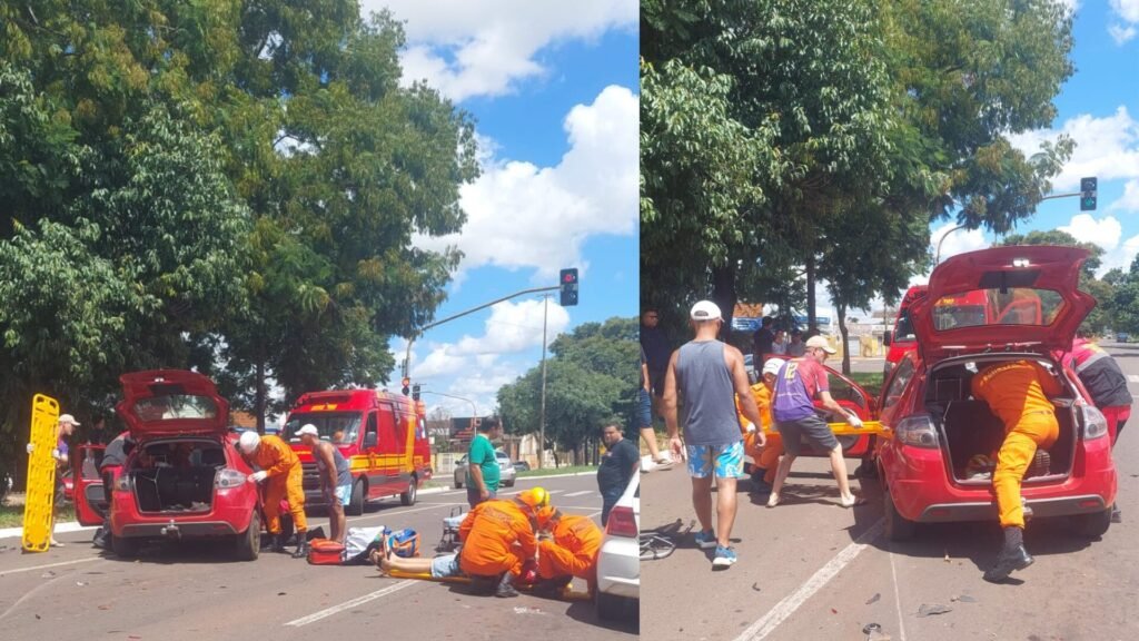 A equipe do Corpo de Bombeiros foi acionada e está no local prestando os primeiros atendimentos. Um dos veículos envolvidos, um Ford Ka vermelho, estava ocupado por três pessoas, incluindo dois adultos e uma criança. O motorista conseguiu sair do carro, enquanto a passageira precisou ser removida pelos bombeiros e ambos foram imobilizados para atendimento.