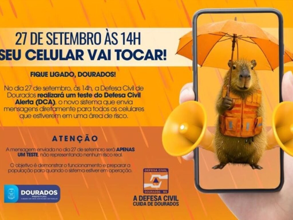 Mas, calma! Inicialmente o alerta será apenas teste, como explica o coordenador da Defesa Civil de Dourados, Johnes Santana. “Será uma forma inovadora de informar à população sobre eventos climáticos adversos, lembrando que no dia 27 será apenas um experimento”, pontua o coordenador.