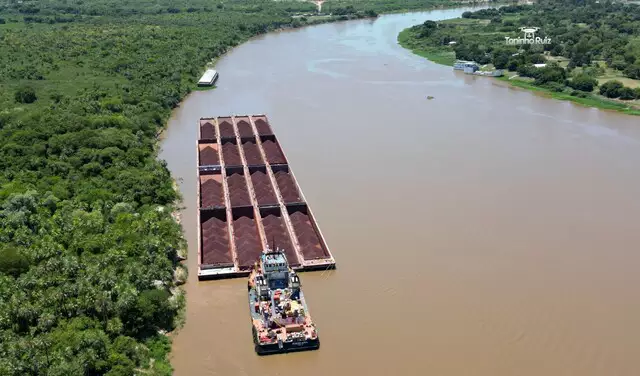 Prova disso é que um registro feito pelo fotógrafo Toninho Ruiz, que mostrou comboio de 16 barcaças carregadas de minério, sendo empurradas por um rebocador com bandeira paraguaia, vindo de Corumbá. Elas passavam pelo meio da construção da ponte da Rota Bioceânica.