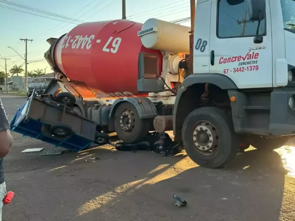Jovem de 28 anos ficou ferida em Rio Brilhante após colisão entre uma motocicleta e um caminhão-betoneira na tarde desta quarta-feira, 10 de setembro. O incidente ocorreu no cruzamento das ruas Coronel Alves Corrêa e Expedicionário Hugo Gonçalves, na cidade a 50 quilômetros de Dourados.
