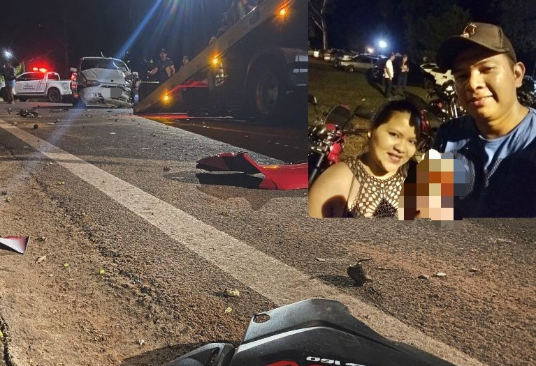Um grave acidente de trânsito envolvendo um carro e uma motocicleta resultou na morte de um casal na madrugada desta segunda-feira (9), em Aquidauana.