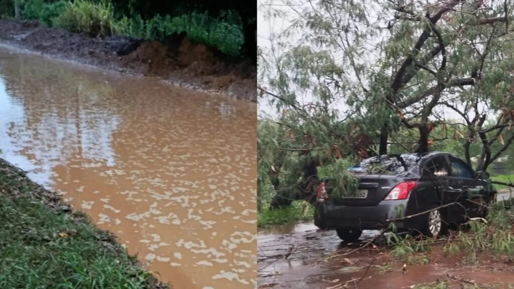Outro veículo estacionado na praça do Coophasul teve ‘perda total’. Uma árvore de grande porte que ficava no local público caiu sobre o Gol G4. A situação interditou a Rua Cotegipe. Na Vila Nossa Senhora das Graças, a árvore soltou-se pela raiz e caiu sobre a rede elétrica, derrubando a fiação na via. Moradores preocuparam-se com os riscos associados aos fios de energia expostos.