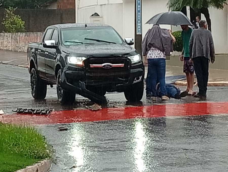 Colisão entre duas caminhonetes Ford Ranger no centro de Nova Andradina deixou um homem ferido na manhã desta segunda-feira.
