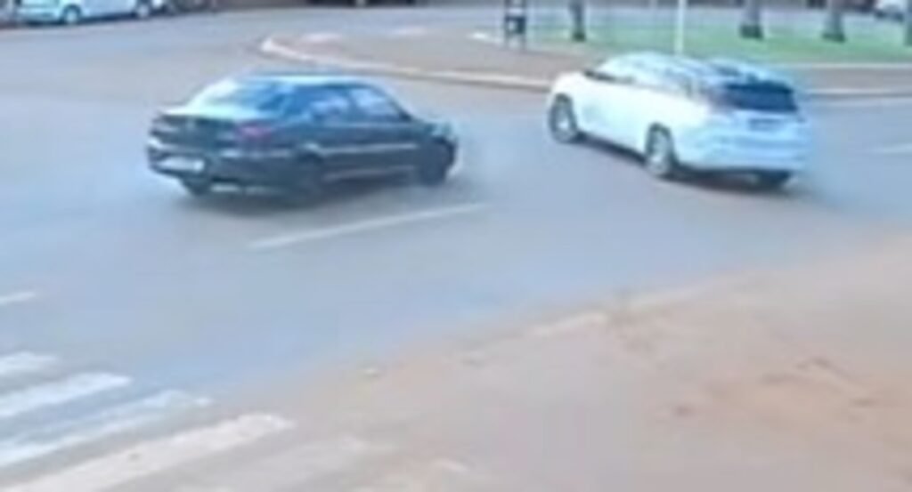 Imagens capturadas por câmeras de segurança mostraram o instante da batida entre um Fiat Siena e um Jeep Commander na tarde de sexta-feira (10) em Sidrolândia. A cidade está localizada a 70 quilômetros de Campo Grande.