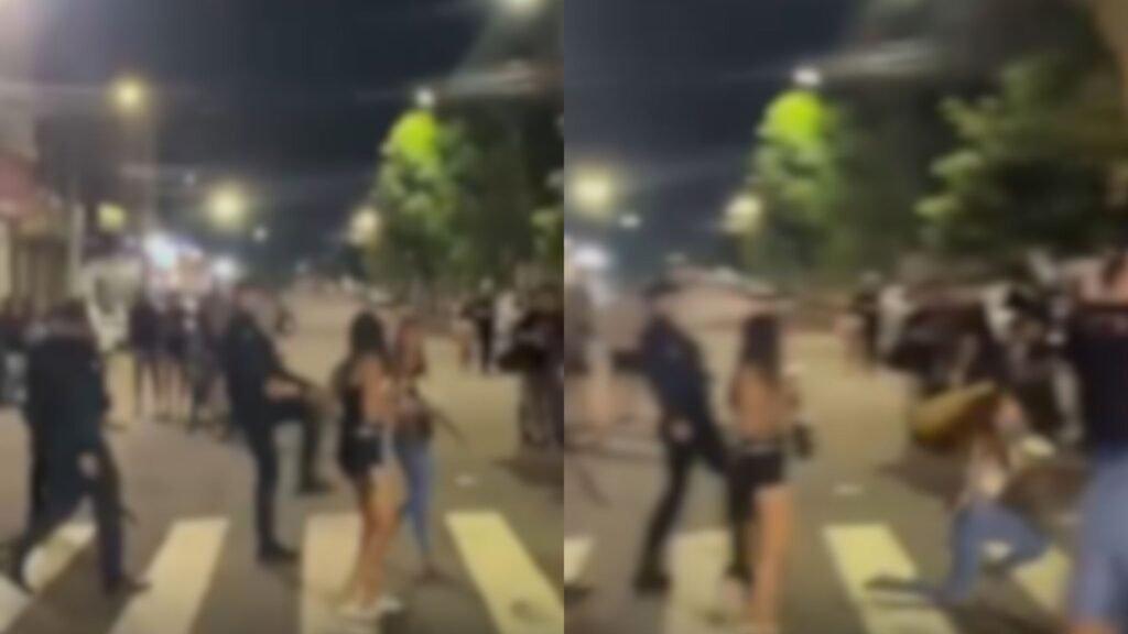 Um policial foi filmado desferindo um chute nas costas de uma jovem durante o Carnaval, na noite da última terça-feira. O incidente ocorreu no Centro de Campo Grande, especificamente na Rua 14 de Julho, no cruzamento com a Avenida Mato Grosso. As imagens mostram uma confusão na faixa de pedestre, onde o policial agrediu a adolescente, que caiu ao chão.