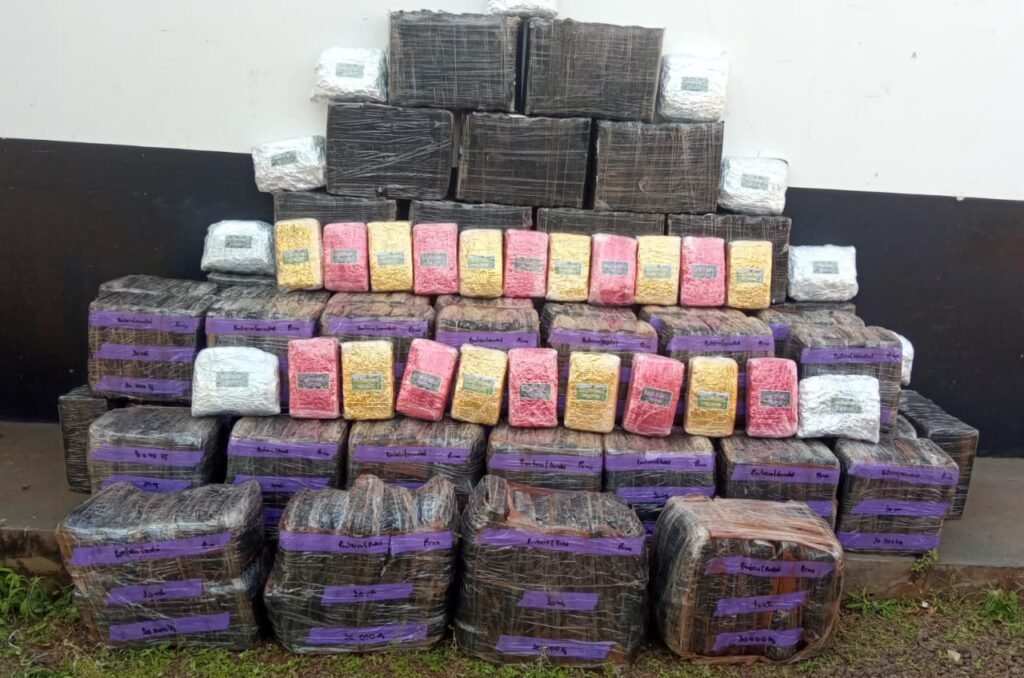 Quase uma tonelada de drogas foi apreendida, na manhã de 4 de outubro, em um sítio do Assentamento Sul Bonito, área rural de Itaquiraí, após ação do Departamento de Operações de Fronteira (DOF). A apreensão, que incluiu maconha e skank, totalizou cerca de 895,5 quilos, com um prejuízo estimado ao crime superior a R$ 5,5 milhões.