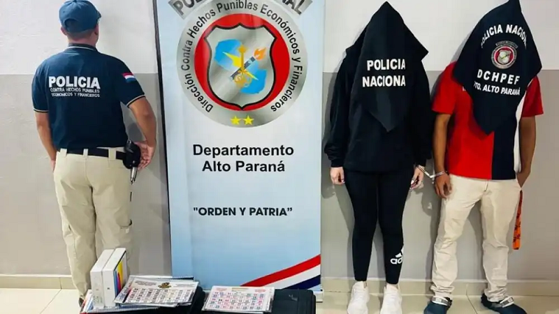 Duas pessoas foram detidas durante um operativo realizado por agentes da Direção Contra Hechos Puníveis Econômicos e Financieros do Departamento de Alto Paraná, em prosecução a uma denúncia por um suposto crime de estafa contra a propriedade e o patrimônio das pessoas, mediante a modalidade de jogos de azar.