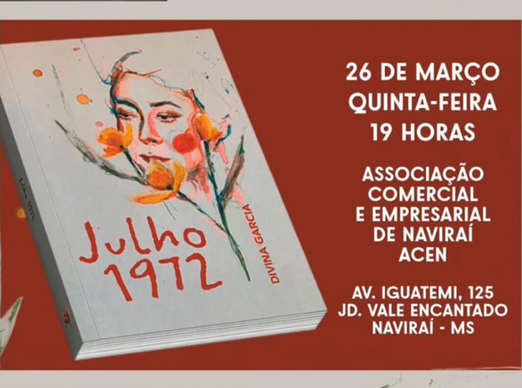 A escritora e professora Divina Célia Garcia realiza, no próximo dia 26 de março, o lançamento de seu mais recente livro, “Julho 1972”, em Naviraí, no Conesul de Mato Grosso do Sul. O evento está marcado para as 19h, na Associação Comercial e Empresarial do município.
