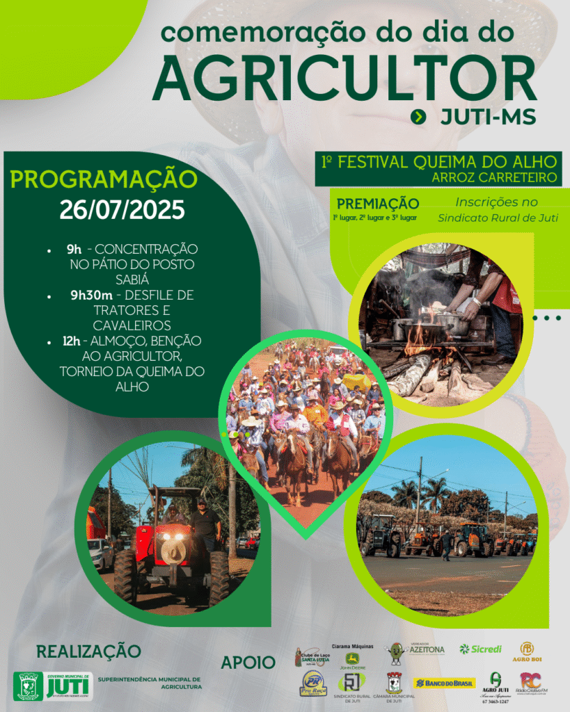 Juti, no Mato Grosso do Sul, se prepara para uma grande celebração em homenagem ao Dia do Agricultor, no dia 26 de julho de 2025. A festividade visa reconhecer a importância dos trabalhadores rurais para o desenvolvimento da região e do país.