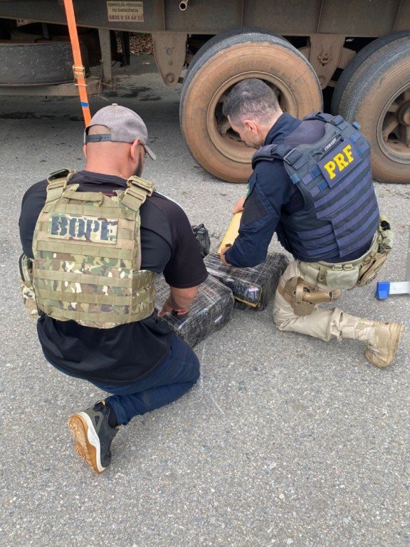 Durante a vistoria, os policiais encontraram aproximadamente 1 tonelada e 300 kg de maconha, transportada em um caminhão e ocultada em meio a uma carga de recicláveis.