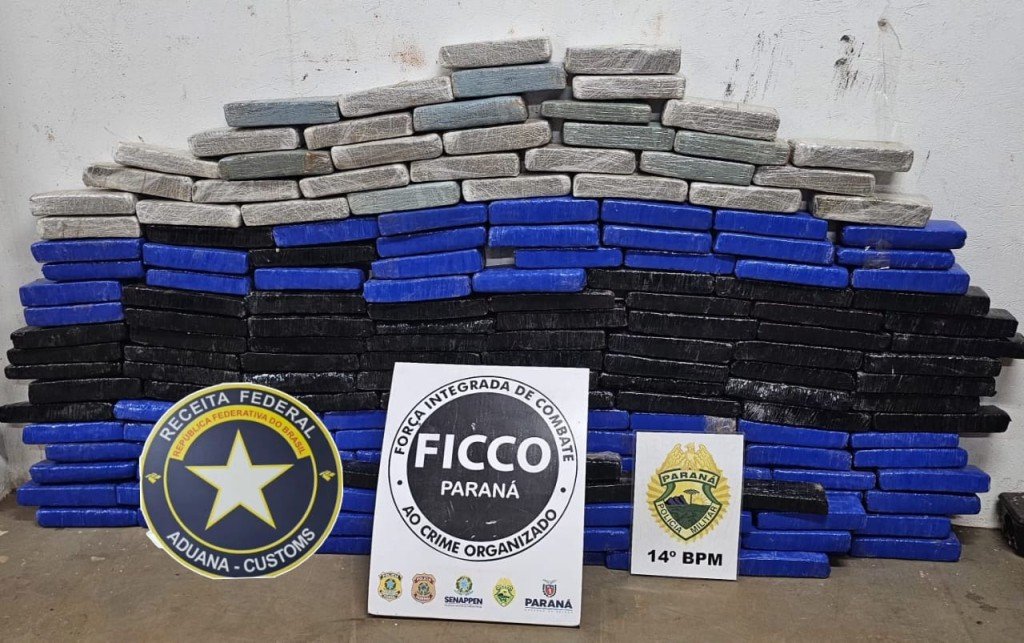 A Força Integrada de Combate ao Crime Organizado do Paraná (FICCO/PR), em colaboração com a Polícia Militar e a Receita Federal, apreendeu 105,6 kg de maconha em Foz do Iguaçu, Paraná, nesta terça-feira. Dois homens foram presos em flagrante por tráfico internacional de drogas.