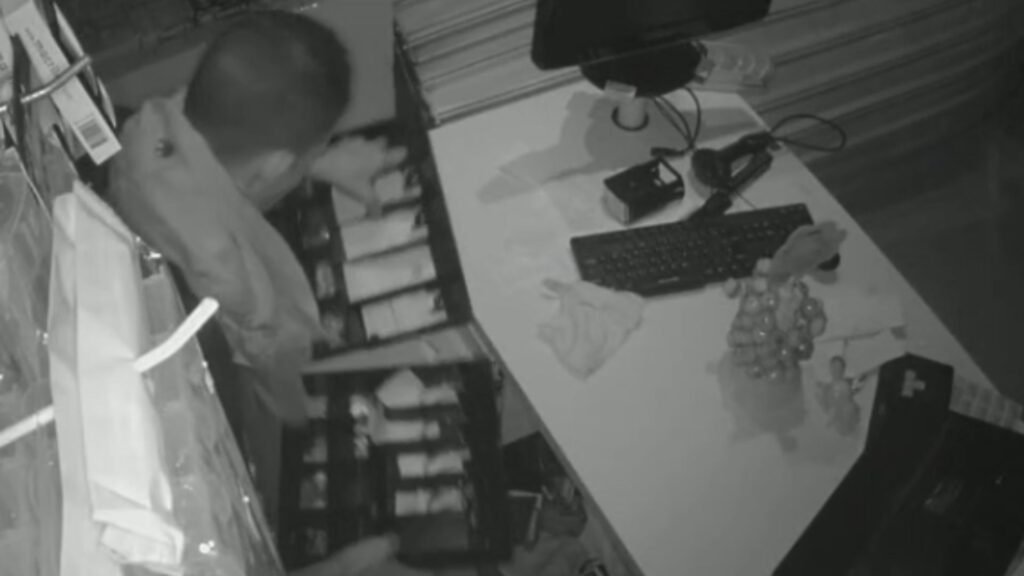 A Polícia Militar relatou que os quatro homens presos na operação da MS-258 estavam conectados ao furto registrado na madrugada em uma farmácia localizada na Avenida Ana Luísa de Souza, no bairro Pioneiros, em Campo Grande. As imagens mostram que eles chegaram ao local em um Fiat Uno vermelho por volta das 3h40 e arrombaram a fachada do comércio.