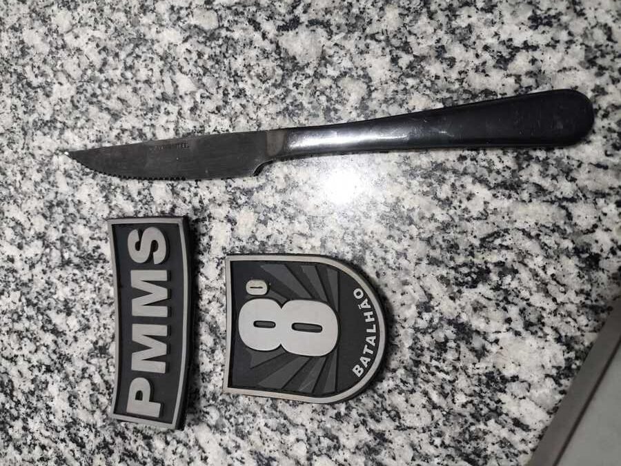 A polícia foi acionada após uma denúncia e, ao chegar ao local, encontrou o autor armado com uma faca. Mesmo após ordens para largar a arma, ele avançou contra a equipe, sendo contido e preso. Durante o transporte para a Delegacia de Polícia Civil, ele causou danos significativos ao compartimento da viatura ao chutar o equipamento.