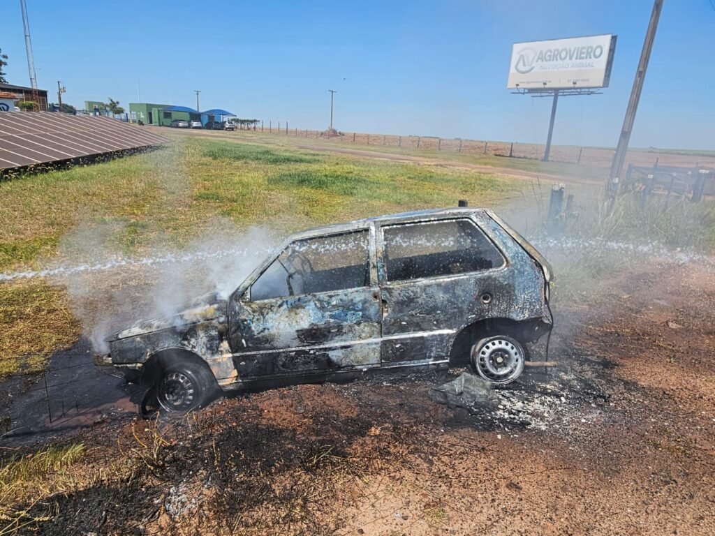 Perseguição policial em Naviraí termina com veículo em chamas e traficante preso.