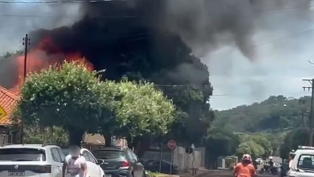 Imagens mostram o incêndio, que rapidamente chamou a atenção de quem passava pelo local. O Corpo de Bombeiros foi acionado e conseguiu controlar as chamas, evitando que o fogo se espalhasse para outras áreas.