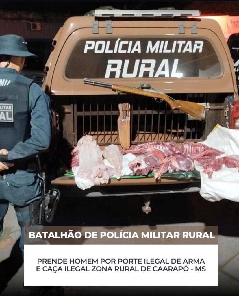 A ação teve início após denúncias à Polícia Militar Rural sobre a prática frequente de caça ilegal na região. O suspeito foi abordado em uma estrada vicinal que liga o município de Caarapó à região de Juti.