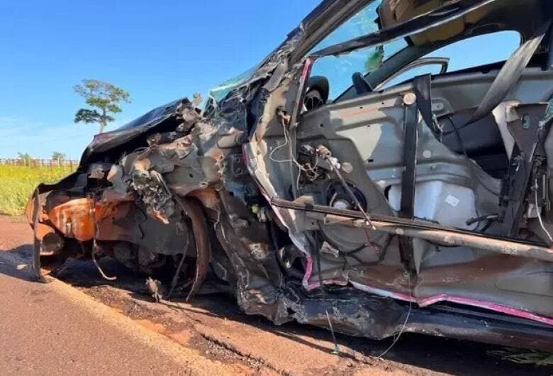 Um veículo Ford/Fiesta, ficou com a lateral totalmente destruída ao bater em um caminhão na rodovia BR-376, trecho entre Ivinhema e o Distrito de Amandina. O carro teve uma das portas e a uma das rodas arrancadas com o impacto da colisão e apesar da gravidade do acidente, os ocupantes sofreram apenas ferimentos leves.