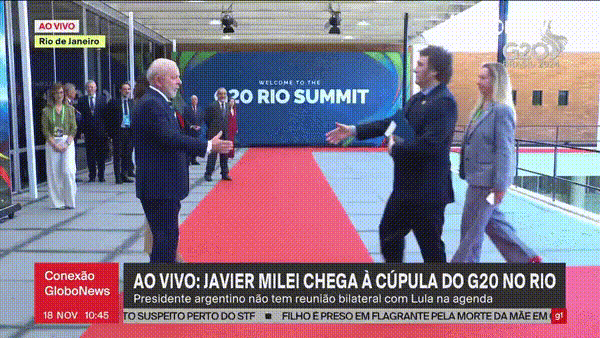 O presidente Lula e Javier Milei, presidente da Argentina, trocaram cumprimentos frios, sem abraços nem sorrisos, na chegada ao G20 nesta segunda-feira (18) no Rio de Janeiro.