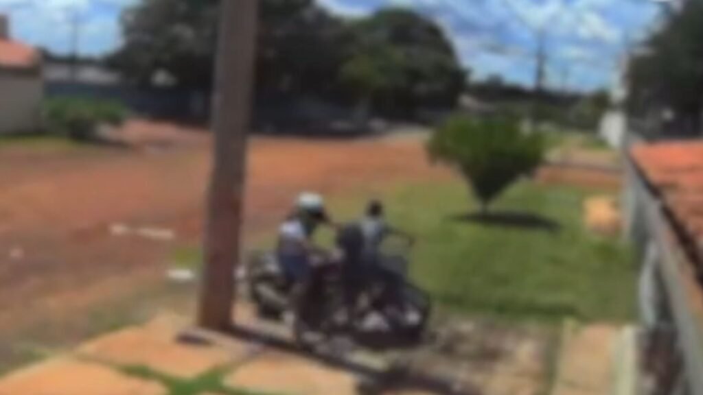 Câmeras de segurança registraram uma perseguição a uma mulher que estava de bicicleta na tarde de sábado (14) no Portal Caiobá I, em Campo Grande. O motociclista a perseguiu e tentou atingi-la, resultando em sua queda.