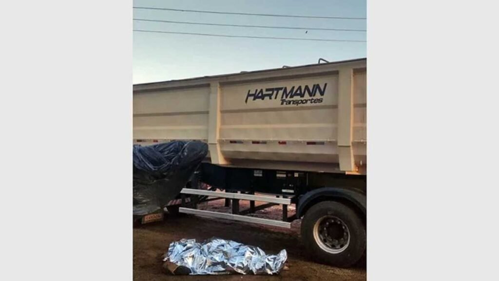 A equipe de resgate não pôde fazer nada para salvar a vítima, que morreu no local do acidente. A carreta bitrem estava estacionada em um local que não era seguro para o procedimento de enlonamento.