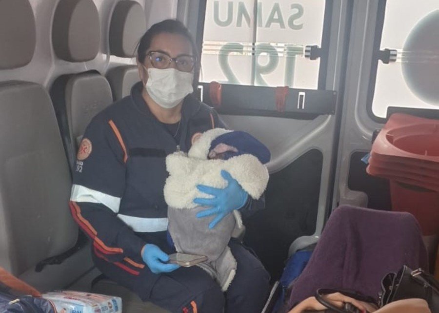Ao chegarem ao local, os socorristas encontraram a mulher deitada no quarto, com o recém-nascido sobre o abdômen. O bebê, do sexo masculino, havia acabado de nascer e apresentava sinais vitais estáveis, estando ativo, corado e chorando.