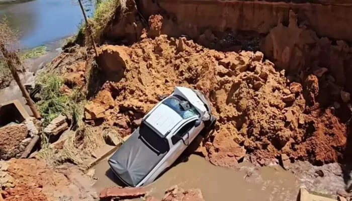 Motorista Desafia Alerta e Picape Desaparece em Cratera em Três Lagoas