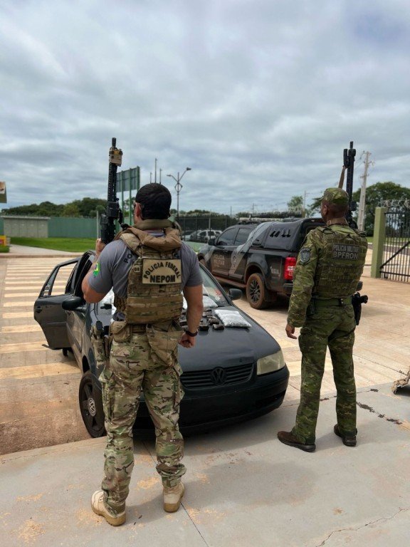 Na ocasião foi apreendido um menor de idade, o qual foi encaminhado à Polícia Civil, e um masculino maior de idade que em conjunto o veículo e o material ilícito foram encaminhados para a Delegacia da Polícia Federal em Guaíra para providências cabíveis.