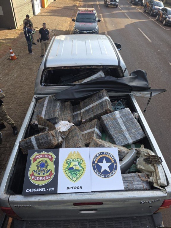 No interior da caminhonete, foi encontrado um casal, que recebeu voz de prisão, além da carga de entorpecentes proveniente da região de fronteira. Os presos, a droga e o veículo foram encaminhados à Delegacia da Polícia Federal em Cascavel, onde foi lavrado o auto de prisão em flagrante.