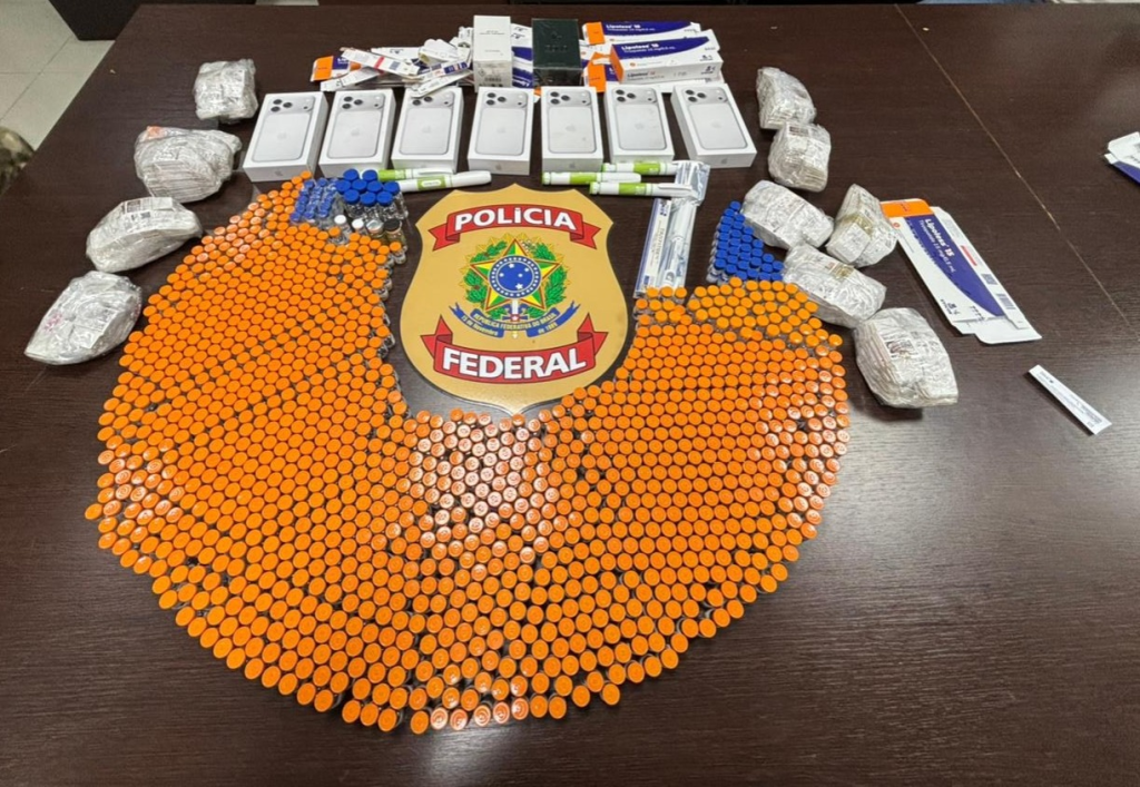 Durante as fiscalizações, foram apreendidas mais de 1.300 ampolas de medicamentos de uso controlado e canetas aplicadoras, além de eletrônicos, bolsas, anabolizantes e perfumes. Esses itens caracterizam transporte de carga ilícita.