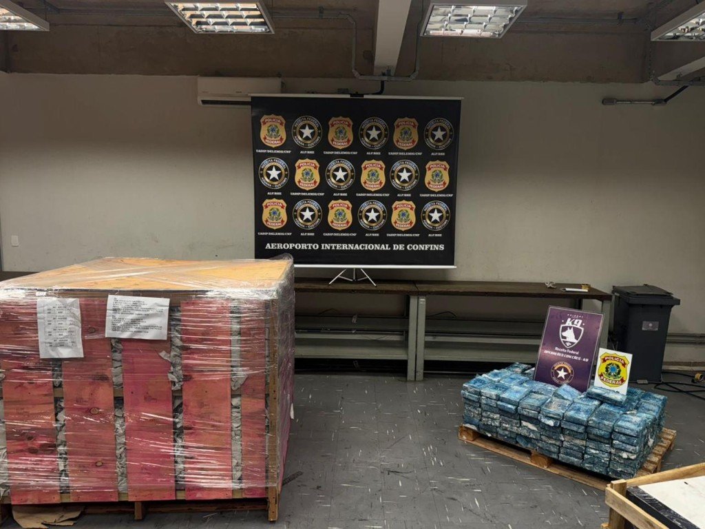 A Polícia Federal e a Receita Federal do Brasil realizaram uma grande apreensão de cocaína no Aeroporto Internacional de Confins (CNF), em Belo Horizonte, Minas Gerais. A operação resultou na apreensão de aproximadamente 1,2 tonelada da droga.