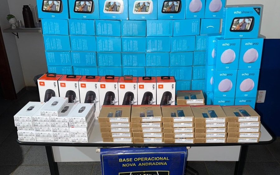 A Polícia Militar Rodoviária (PMR) apreendeu eletrônicos irregulares avaliados em R$ 30 mil durante fiscalização em um ônibus interestadual que seguia de Dourados (MS) para São Paulo (SP), em Nova Andradina. A apreensão ocorreu após a identificação de duas malas contendo os produtos de origem estrangeira sem documentação fiscal no compartimento de bagagens do veículo. A proprietária informou ter adquirido os eletrônicos no Paraguai e pretendia revendê-los na capital paulista. A mercadoria foi apreendida e será encaminhada à Receita Federal, enquanto a proprietária foi liberada após assinar o termo de guarda.