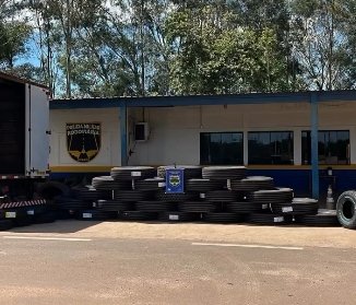 A Polícia Militar Rodoviária apreendeu pneus contrabandeados do Paraguai em um caminhão na MS-164, durante a Operação Dia da Consciência Negra.