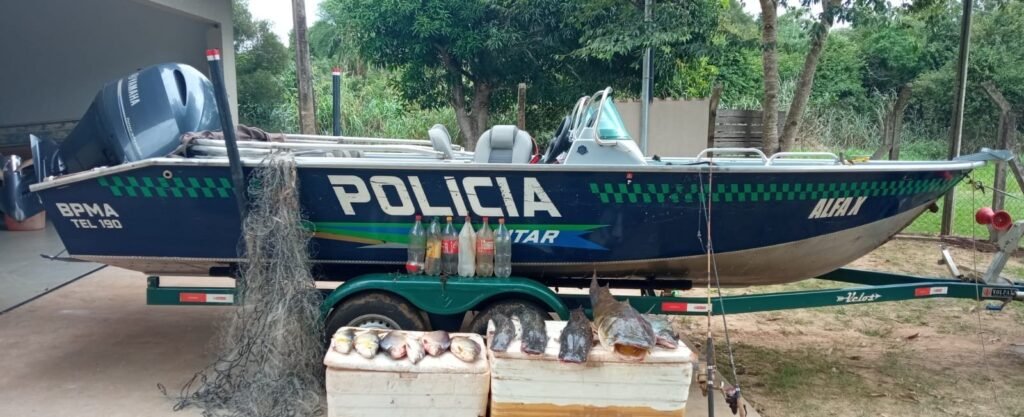 Ao seguir essa trilha, a equipe encontrou, camufladas entre o capim, duas caixas de isopor contendo 42 quilos de peixes abatidos ilegalmente, além de equipamentos de pesca proibidos. A apreensão incluiu espécies com restrições severas de captura, como um Jaú, três Pintados, quatro Piracanjubas, dois Dourados e um Barbado. Junto aos peixes, foram confiscadas uma rede de 45 metros de comprimento, com malha de 12 centímetros, e duas varas de pesca com molinetes.