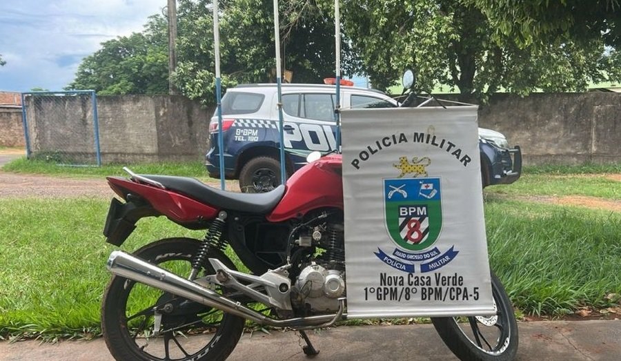 A Polícia Militar apreendeu uma motocicleta com registro de furto e conduziu dois suspeitos à Delegacia de Polícia Civil pelo crime de receptação, no Distrito de Nova Casa Verde, em Nova Andradina.