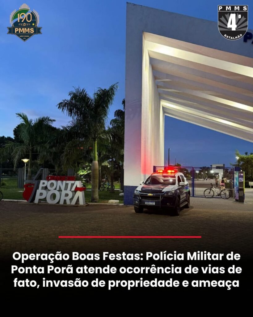 A Polícia Militar atendeu uma ocorrência envolvendo vias de fato, invasão de propriedade e ameaça, registrada na região sul do município. A ação integrou as atividades da Operação Boas Festas, que reforça o policiamento preventivo durante o período de fim de ano. As vítimas relataram que a autora teria invadido a propriedade portando uma barra de ferro e feito ameaças de morte contra um familiar da vítima.