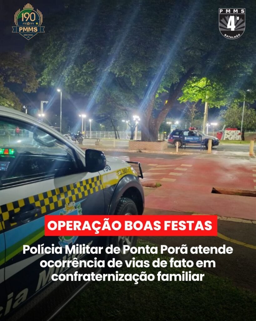 A Polícia Militar atendeu uma ocorrência de vias de fato durante uma confraternização de final de ano. O caso aconteceu após um desentendimento entre familiares. A discussão evoluiu para agressões físicas recíprocas entre os envolvidos.