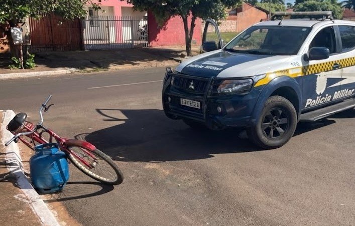 Com base nas informações, a equipe iniciou as buscas e localizou, na Avenida Tarumã, um homem com as características descritas na garupa de uma bicicleta. Durante a abordagem, o passageiro foi identificado como Luiz Ronaldo, que confessou espontaneamente ter furtado o botijão de uma residência situada na Rua Porto Esperança.