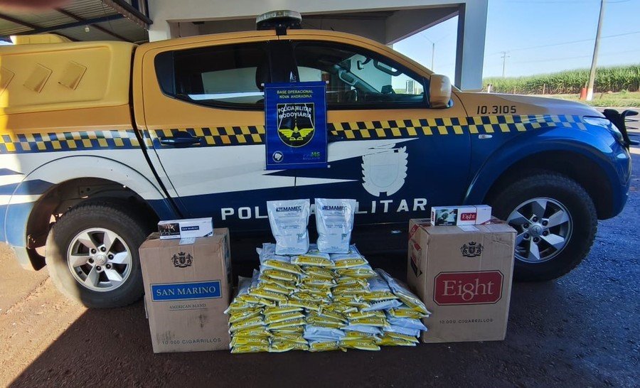 A Polícia Militar Rodoviária apreendeu 100 pacotes de cigarros e 50 pacotes de agrotóxicos em um veículo de carga na rodovia MS-134, entre Nova Andradina e Batayporã.