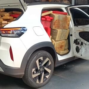 A abordagem ocorreu por volta das 7h30, quando o carro entrou em uma rua que dá acesso a um condomínio local. Durante a vistoria, a equipe encontrou diversos tabletes de maconha no interior do carro.
