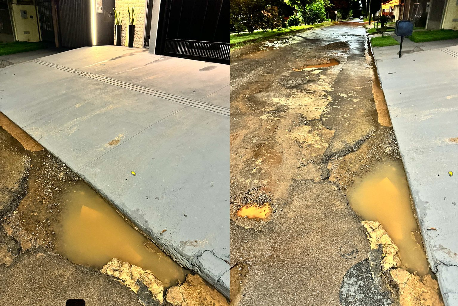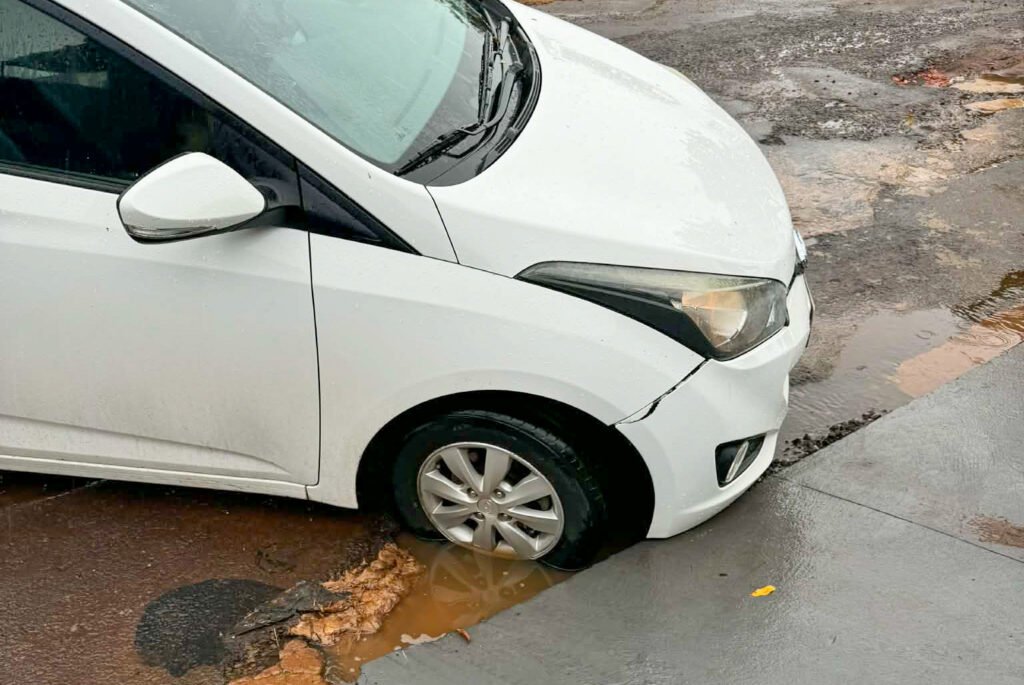 A identidade da moradora foi preservada, mas imagens encaminhadas à reportagem mostram o desgaste da via e o ponto onde ocorreu o incidente. Conforme o relato, o buraco teria se aberto na entrada do imóvel, ampliado pela força da água acumulada.