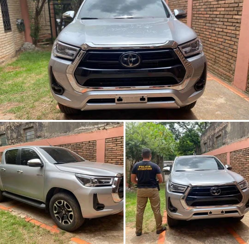 O veículo recuperado é uma Toyota Hilux, cor prata, sem placa, identificada com o número de chassi 8AJBA3CD8M1644222. Tras uma verificação exaustiva no sistema informático da Polícia Nacional e a posterior compulsa de dados com as autoridades brasileiras, se confirmou que o veículo possui um relatório de roubo no município de Feira de Santana, registrado em 23 de dezembro de 2025.