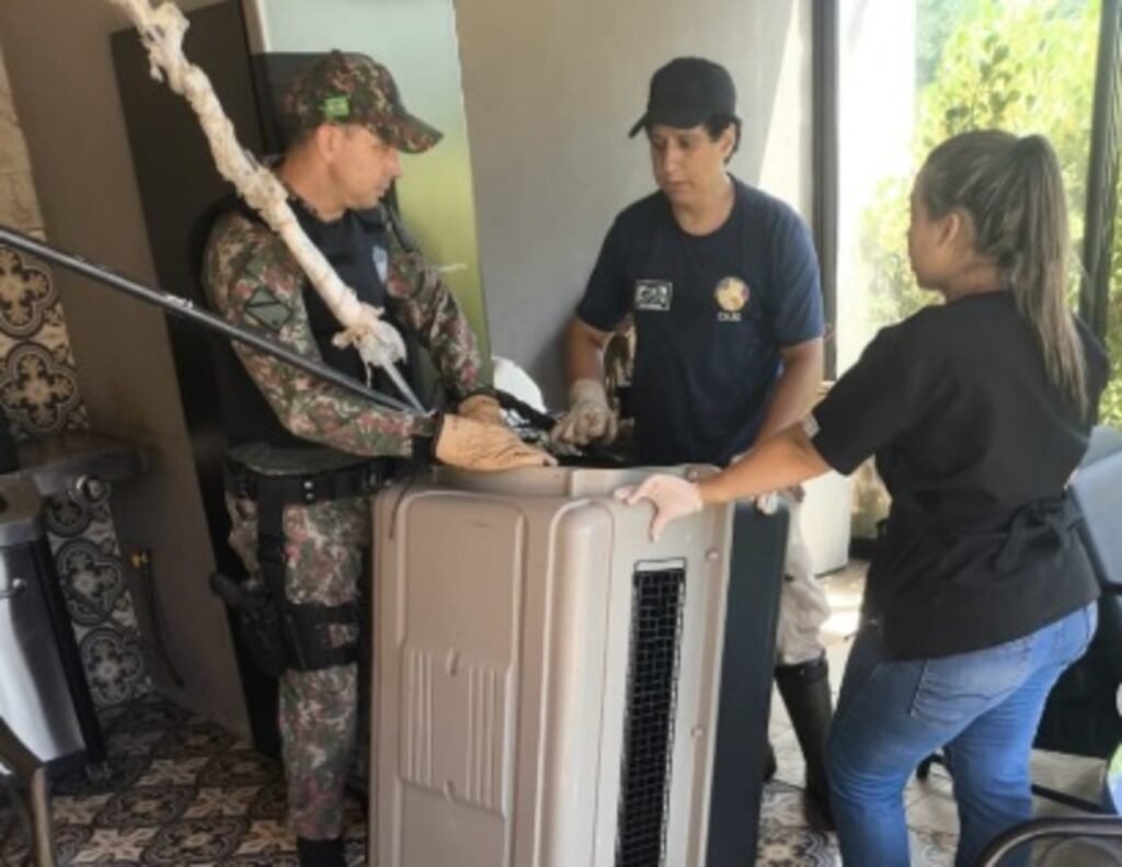A Polícia Militar Ambiental, em parceria com o CRAS, capturou um macaco-prego encontrado na cozinha de uma residência em Campo Grande. O animal havia sido avistado nos últimos dias circulando pelo condomínio até ser localizado dentro do imóvel, onde a equipe realizou a captura.