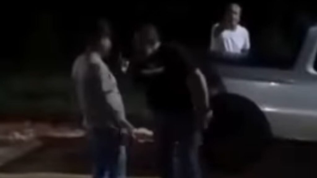 Um vídeo divulgado mostra o servidor público Hugo Centurião Enciso e o advogado Cássio de Souza durante uma discussão com os suspeitos em Caarapó.