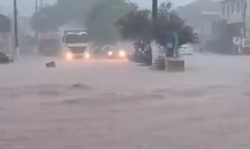 Vídeos mostram vias da cidade alagadas durante o temporal na sexta-feira. Em um vídeo, o prefeito Sergio Barbosa mostra a cratera que se formou em um local de obra, na Rua Antônio Pereira dos Santos, na Vila Pimentel.