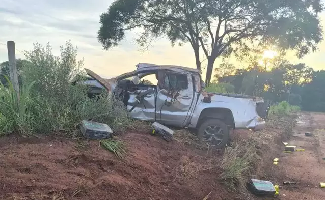 Um traficante morreu após capotar uma caminhonete carregada com mais de 1,6 tonelada de maconha na MS-295, em Iguatemi, Mato Grosso do Sul.