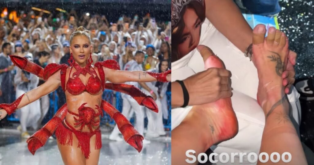 Não é a primeira vez que ela relata problemas nos pés durante a preparação para o Carnaval. Em publicações anteriores, a rainha já havia compartilhado bolhas no dedão e calcanhar, além de torções, ressaltando a dedicação ao samba.